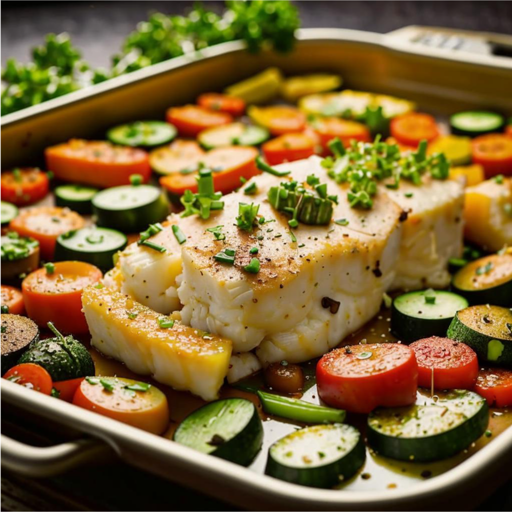1. Запечёная треска с овощами