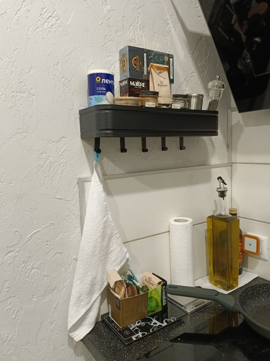 Покажу, что у меня вообще на кухне. Плохо себя чувствовала как-то вечером, а в такие моменты меня немного успокаивает организация пространства и что-то подобное. Например, я вытерла влажной салфеткой батарею. Впервые за всё время жизни в этой квартире. Кстати, батарея так разумно устроена, что одной салфетки хватило полностью, там было всего чуть-чуть какого-то тёмного налёта. Можно было и не тереть, просто мне нужно было чем-то занять руки. Если внезапно хочется перебрать кухонный шкафчик, значит, бахнула тревожность. На это всегда стоит обратить внимание.) Кухонный уголок. Полочка с чаями и частью специй, с полотенцами. Обожаю её. Внизу двое кухонных весов, рулон бумажных полотенец и масло. А вот шкафчик. Это наша с мужем полка. Протёрла её, кажется, тоже впервые с переезда в эту квартиру. Ну, может, во второй раз. Как-то раз мы там что-то рассыпали и пылесосили её поэтому.)) Всё с полочки достала на столешницу, протёрла, хватило пяти салфеток. Проверила сроки годности, выбросила гор