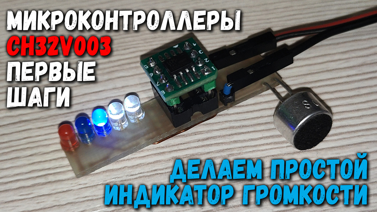 Сегодня, с замиранием сердца, начинаю разбираться с программированием новых для меня недорогих 32-битных китайских микроконтроллеров на ядре RISC-V серии CH32V003. Начинаю с изучения основных библиотек, работы с входами-выходами, системным таймером и аналого-цифровым преобразователем (АЦП). В качестве полезной нагрузки я спроектирую и изготовлю простой светодиодный индикатор уровня звука (в просторечье и по-научному - UV-метр), работающий от микрофона.