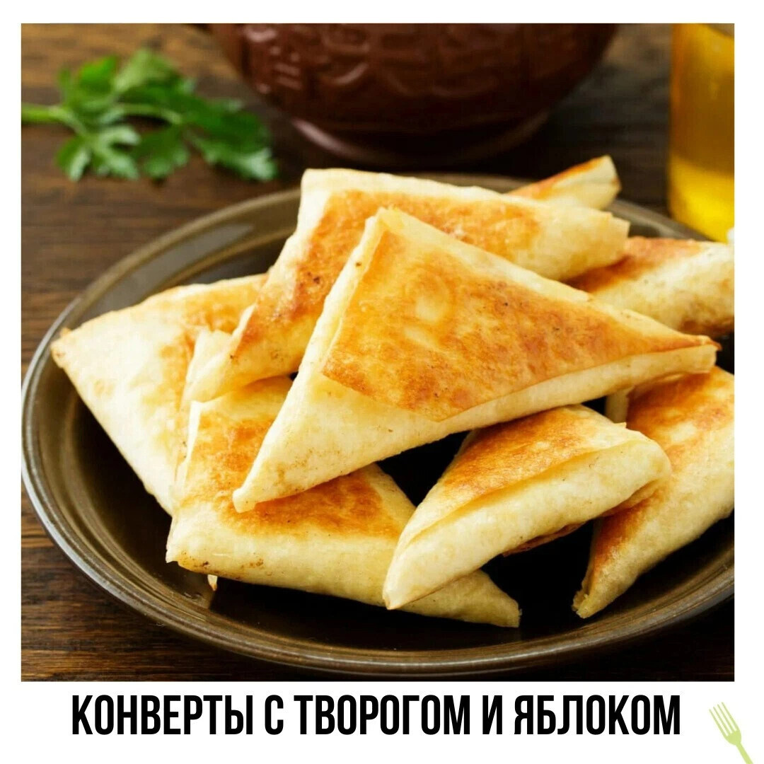 🍎 Завтрак: Конверты с яблоком и творогом, чай или кофе с молоком 50 мл Готовим на 3 порции. Калорийность порции 313 ккал Состав: Творог 2% - 180 гр., лаваш тонкий - 160 гр., курага - 20 гр., яблоки - 250 гр., морковь - 1 шт. (большая), мед - 2 ч.л. Приготовление: Морковь натрите на мелкой терке. Яблоки очистите и натрите на крупной терке. Курагу нарежьте мелко. Выложите морковь в сотейник или АП сковороду, влейте немного воды и тушите на медленном огне до мягкости. Добавьте к моркови курагу и ягоды и тушите до мягкости яблок. Добавьте мед. Когда смесь немного остынет, добавьте творог и хорошо перемешайте. Из лаваша нарежьте полосы шириной около 10 см. Выкладывайте начинку на лаваш и формируйте треугольные конверты. Выложите конверты на противень и выпекайте при t 190 C до появления румяного цвета (минут 15- 20). Подавать можно как горячем, так и холодном виде. 🍎 Перекус: Любые фрукты 300 гр. (кроме банана, т.к. у него выше калорийность). 🍎 Обед: Индейка по-итальянски, любая крупа