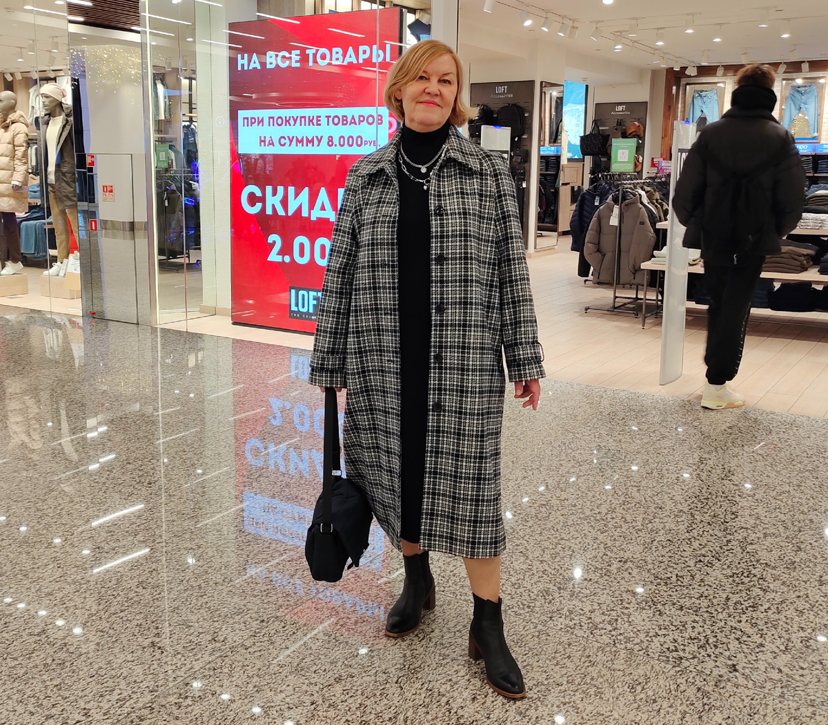 Оказалось, что в нем полно народу. И ясно почему - в отделе объявлены скидки на все, в том числе и на зимнюю обувь.