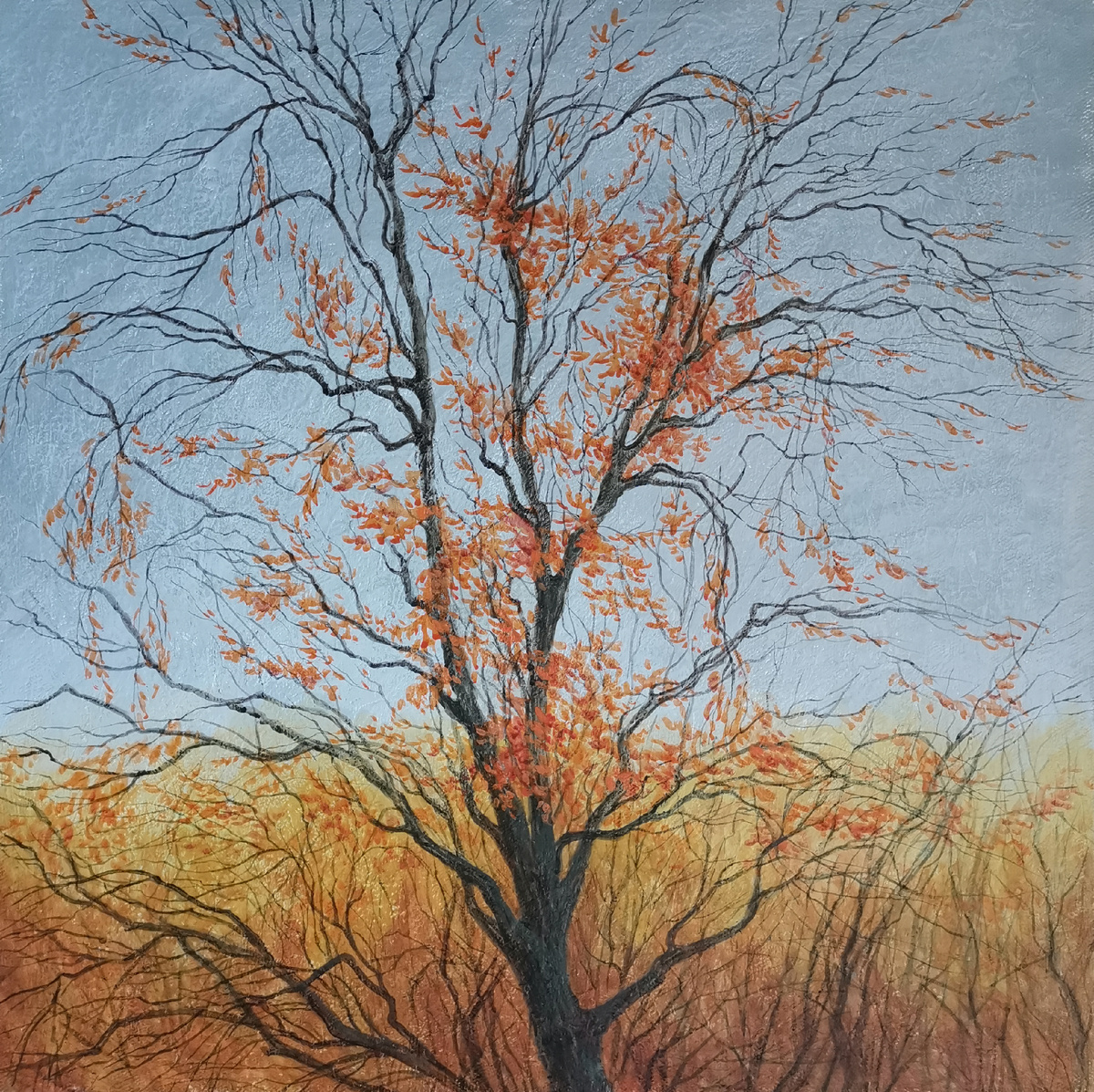 «— На самом деле это души деревьев, что мы видим зимой. — Я думаю, они выглядят, как человеческие души.» фразы из фильма Ларса фон Триера Мне близко сравнение душ деревьев и человеческих, и в этой картине я хотела показать аллегорию - душа человека в образе осенних деревьев. Летом все скрыто за густой листвой, как внутренний мир человека скрыт за внешностью и атрибутами материального мира. Осенью начинают выступать все эти стволы и ветки. Посмотрите, какие они изогнутые. Если отбросить внешнее впечатление, можно увидеть человека таким, какой он есть, со всеми его особенностями, взглядами, внутренней жизнью. Еще один смысл картины, очень важный - напоминание о том, что необходимо иметь внутреннюю духовную жизнь. Свои отношения с мирозданием. Это основа, на которую цепляется все остальное: отношения с людьми, жизненные обстоятельства, материальные вещи. Как деревья: ствол и ветки - основа, духовный стержень, листья - материальный мир, отношения, деньги, вещи. Когда листья опадают,