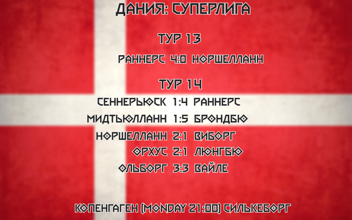 • Также посреди недели проходила 1/8 Кубка Дании: