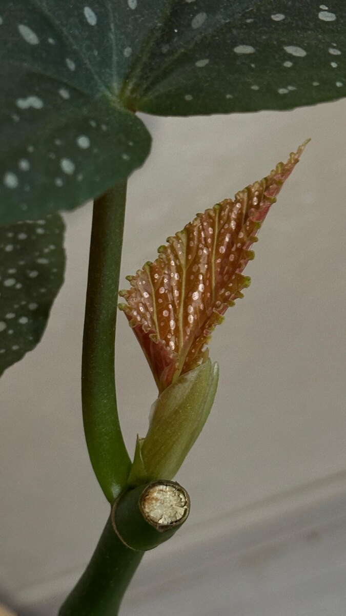 Вообще я не выбрасываю ни один листик и, уж тем более, черенок. Все идет в колбу с водой на укоренение. Чаще всего корни дает «все». Не всегда размножение листом имеет продолжение. Так, например, я почти год «игралась» с листом шефлеры. Он около 2-х месяцев стоял в воде и все таки пустил корни. Лист чувствовал себя отлично. Но вот роста дальше никакого не продолжилось. Так лист шефлеры в грунте уже простоял почти год. С бегонией, конечно, совсем другая история. Всем привет, дорогие подписчики и гости моего блога. Я , Ксю и мой блог о домашнем уюте и «зеленых друзьях». Люблю экспериментировать #непоправилам Создаю уют и оранжерею в квартире. В моей коллекции уже + 100 горшочков на подоконнике и это количество только растёт У меня бегонии две: тигровая и пятнистая. Обе у меня уже давно и прошли огонь, воду и медные трубы, как говорится.🙂 Конечно, я испробовала разные способы размножения. Черенком. Это один из стандартных и самых легких способов размножения многих растений. Корни пу