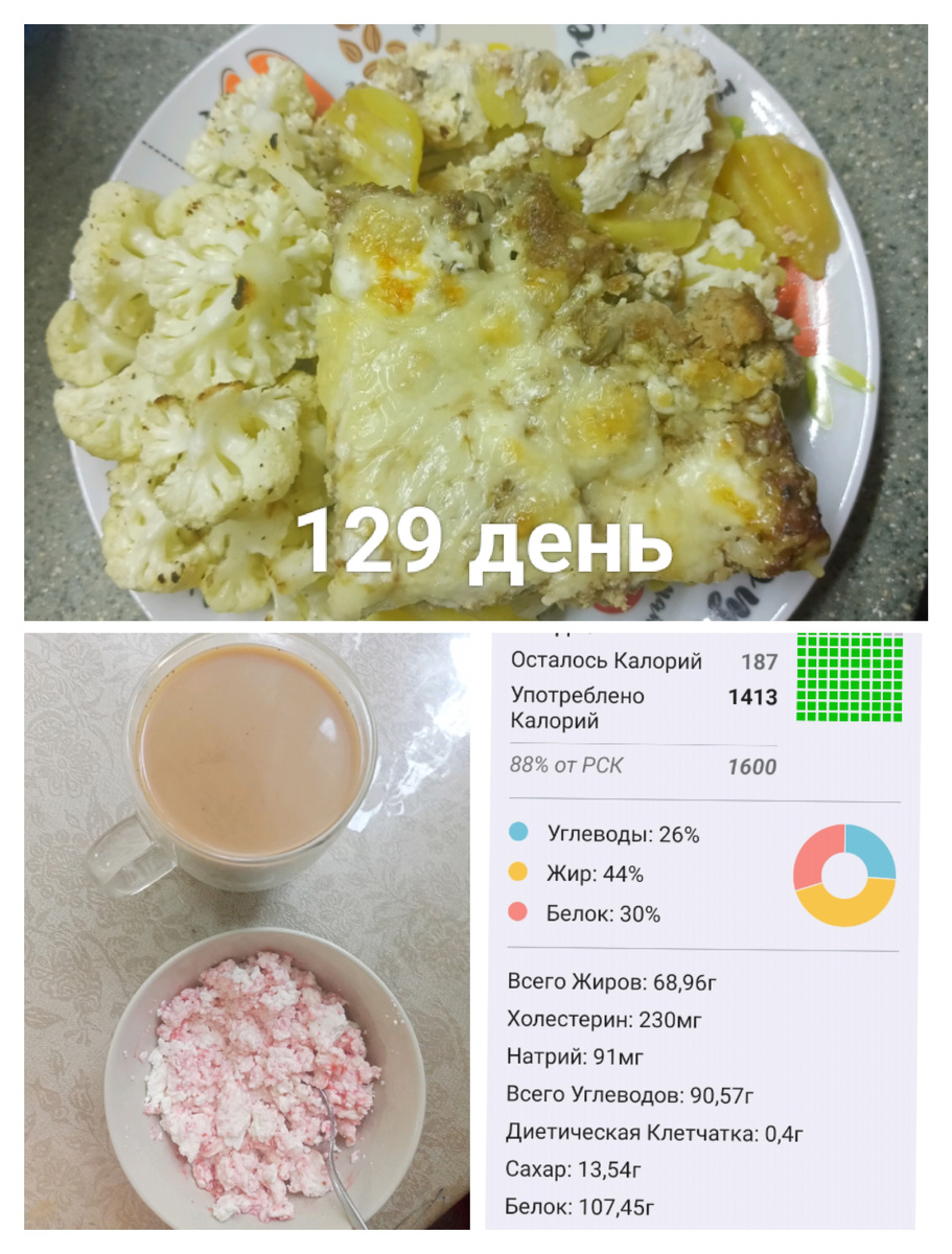 Приветствую вас, друзья, подписчики и гости канала. Я худеющая мама трёх мальчишек. Для тех, кто не знает: я завела этот дневник о своей многодетной жизни, а также похудении с 95кг. Моя цель - вернуть себе свой комфортный вес 60кг при росте 172см. На этой неделе придерживалась питания в диапазоне 1600 ккал БЖУ 110/80/120 Пока ничего не меняю, потому что не понимаю, как для меня оптимально. В целом я готовлю простую еду из обычных продуктов, не использую полуфабрикаты, колбасные изделия, заводскую выпечку. Для детей стараюсь печь сама, чтобы был понятен состав. 129 день (понедельник) Готовила картофельную запеканку с фаршем под сыром. Из овощей ела цветную капусту. Ужин и обед были такими, а на завтрак кофе и творог с клубникой. 130 день (вторник): утром ветчина индейки с яйцом, овощами и немного макарон, протеиновый пудинг и кофе. В обед салат с кус-кусом, овощами и запечённой свининой, на ужин блины с 2% творогом 131 день (среда): жарила филе минтая (в счётчике я учитываю добавление м