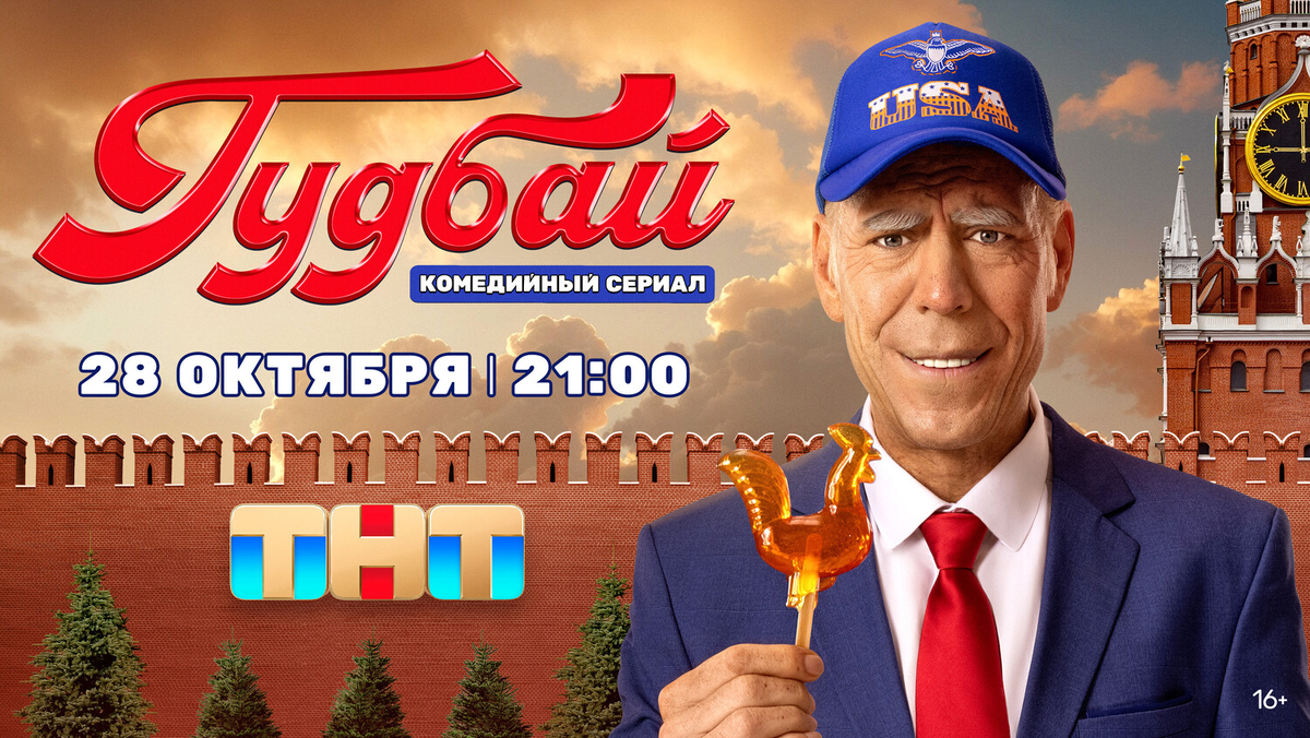 С 28 по 31 октября посмотрел по ТНТ мини-сериал «Гудбай» (8 серий по 20-25 минут). Первый сериал про Байдена, да ещё и русский, такое нельзя было пропустить. Казалось, мы наконец-то начнём насмехаться над американцами, как они над нами в Голливуде, но пока, также как у них, у нас получилось не смешно. По сюжету Байден летит в Россию, как обычный человек, чтобы как-нибудь нам навредить и начинает жить, как пенсионер, а навредить русским у него не как не получается. Агенты ФБР перепутав Байдена с нашим пенсионером увозят его в Америку и тут уж наш дед Иван Иваныч мог бы оторваться от души, но он только успел принять закон об уроках ОБЖ в американских школах. Шутки в сериале конечно есть, но все они очень банальные и примитивные, поэтому не смешно. Дело наверно в том, что из 3-ех сценаристов этого сериала: 2 дебютанта, а третий уже участвовал в создании 5 комедийных сериалов производства того же ТНТ. Как по мне, для сериала с политическим юмором сценарий надо было доверить писать кому-ниб