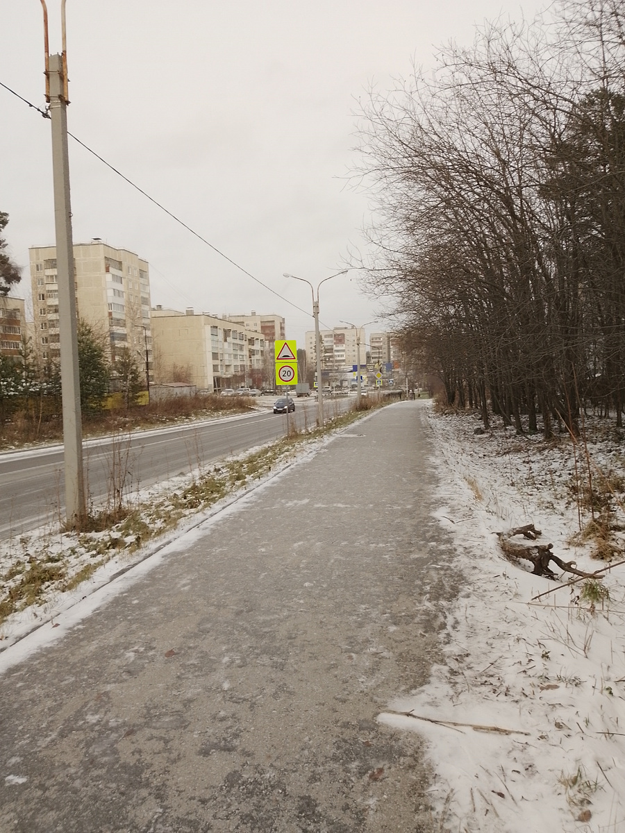 Я забыла с утра о празднике, в церковь не пошла. Когда увидела в Дзене поздравления, было уже поздно. Так что полдня провела за компьютером. Утром нашла в холодильнике одно яйцо, небольшой кочанчик цветной капусты и четыре пельмешка. Капусту отварила, сварила это яйцо и пельмени. Сделала салат с майонезом, капустой, яйцом и замороженным луком пореем. Пельменями закусила. После обеда голод все же выгнал меня на улицу. А там, оказывается, так хорошо, свежо. И воздух замечательный. В магазин я пошла, сделав опять крюк в лес. По этим лесным тропинкам мы с Андреем все лето ходили на занятия в спорткомплекс. С наступление осени там не бывала. Наделала опять фотографий и видео сняла. Мох зелёный красиво смотрится в снегу: Солнца хоть и нет целый день, но все равно на улице хорошо. Только скользко. Идешь спокойно по чистой дорожке и неожиданно под ногами лед. Из леса отправилась в Магнит. Думала, сейчас накуплю всего. Но от вида зала растерялась. Все центральные полки, стеллажи на полу. И