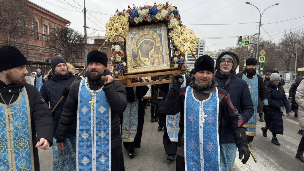 Больше 3,5 тысячи человек прошли сегодня крестным ходом по улицам Екатеринбурга в честь праздника Казанской иконы Божией матери. Об этом сообщили в пресс-службе Екатеринбургской епархии. Празднование началось с божественной литургии в Свято-Троицком кафедральном соборе. Его возглавил митрополит Екатеринбургский и Верхотурский Евгений, после тысячи верующих с иконами отправились ко Хоаму-на-Крови, сделав остановку у часовни святой Екатерины. Напомним, православный праздник неразрывно связан с Днём народного единства – в 1612 году ополчение под командованием Кузьмы Минина и князя Дмитрия Пожарского освобождало Москву от польских интервентов. Тонга одни из ополченцев привезли из Казани чудотворный образ Пресвятой Богородицы. С ним русские воины и одержали победу. В 2023 году после почти ста лет забвения образ был вновь обретен, он находился на складах, помещенный туда в советское время. Екатеринбург, Елена Сычева Новость на сайте / Больше новостей