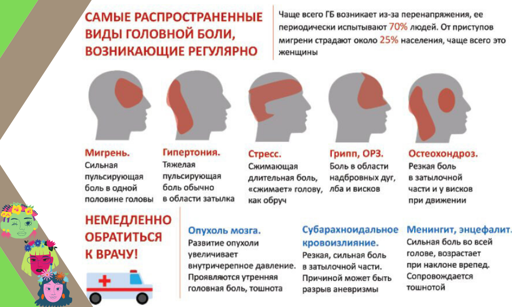- Тензионная головная боль: Самый распространенный тип головной боли, проявляющийся как давление или напряжение вокруг головы, лба и висков. Часто вызвана стрессом или напряжением.
