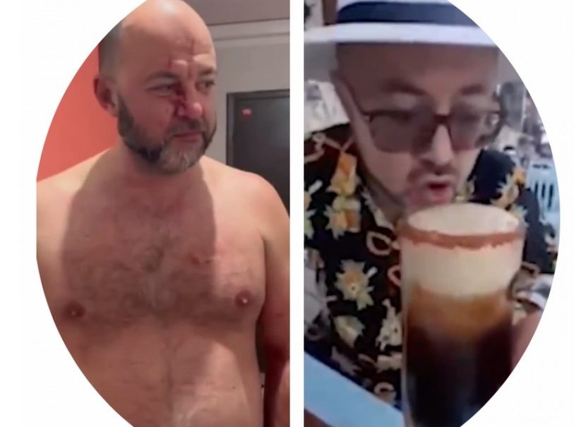 Фотоколлаж "Блокнот Курск", кадры из видео: «цирковой» номер в пьяном угаре (слева) и «большой привет» из Мексики.