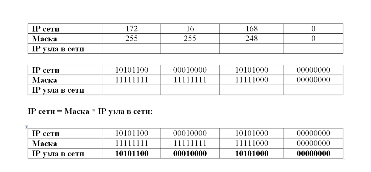 В терминологии сетей TCP/IP маской сети называют двоичное число, которое показывает, какая часть IP-адреса узла сети относится к адресу сети, а какая – к адресу узла в этой сети. Адрес сети получается в результате применения поразрядной конъюнкции к заданному адресу узла и маске сети. Сеть задана IP-адресом 172.16.168.0 и маской сети 255.255.248.0. Сколько в этой сети IP-адресов, для которых количество единиц в двоичной записи IP-адреса не кратно 5? В ответе укажите только число. Решение: Последние 11 цифр (выделено красным) это варианты возможных последних цифр возможных адресов узлов (компьютеров) в этой сети. Варианты последних 11 цифр IP узла в сети в десятичной системе (калькулятор «Программист» вам в помощь): Итого: от 0 до 2047, это 2048 вариантов IP адресов узлов в сети. Нас интересует количество адресов, в которых число единиц кратно 5. Общее число «1» в IP адресе узлов – это 8 единиц в неизменной части адреса + единицы в изменяемой части адреса. Необходимо посчитать число та