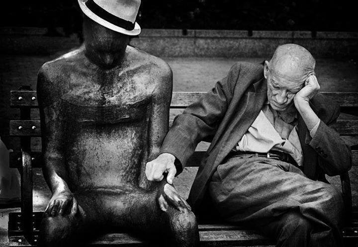 Каждое фото в этой подборке - мгновение жизни, которое навсегда запечатлено на пленке и рассказывает нам свою историю. Здесь нет ни одного постановочного кадра, и именно это делает каждый снимок уникальным. *** Усталый дедушка посапывает на лавочке, облокотившись на локоть. А рядом с ним - бронзовая статуя, смотрящая вниз. Интересно, что их связывает? *** Сколько счастья на лице этого мужчины, который нежно прижимает к себе питомца. Разве можно повторить такие эмоции на заказ? *** Два представителя разных поколений наблюдают за происходящим на улице какого-то японского города. Почувствовали сколько умиротворения исходит от этой парочки? *** Фотограф подловил детей во время трапезы. Уж не знаю, может быть, эта лепешка для малышей еда на весь день... *** Этот кадр очень красиво снят композиционно, ощущается динамика происходящего, словно фотография оживет, и дети потопают ножками дальше. *** При виде этой фотографии вспомнилась заставка латинского сериала "Дикая роза". Помните, как там м