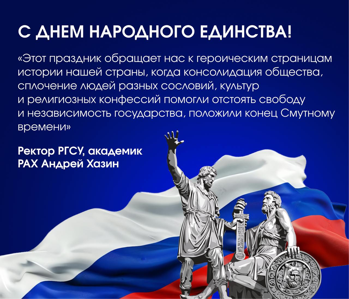 Ректор РГСУ, академик РАХ Андрей Леонидович Хазин поздравляет с Днем народного единства!