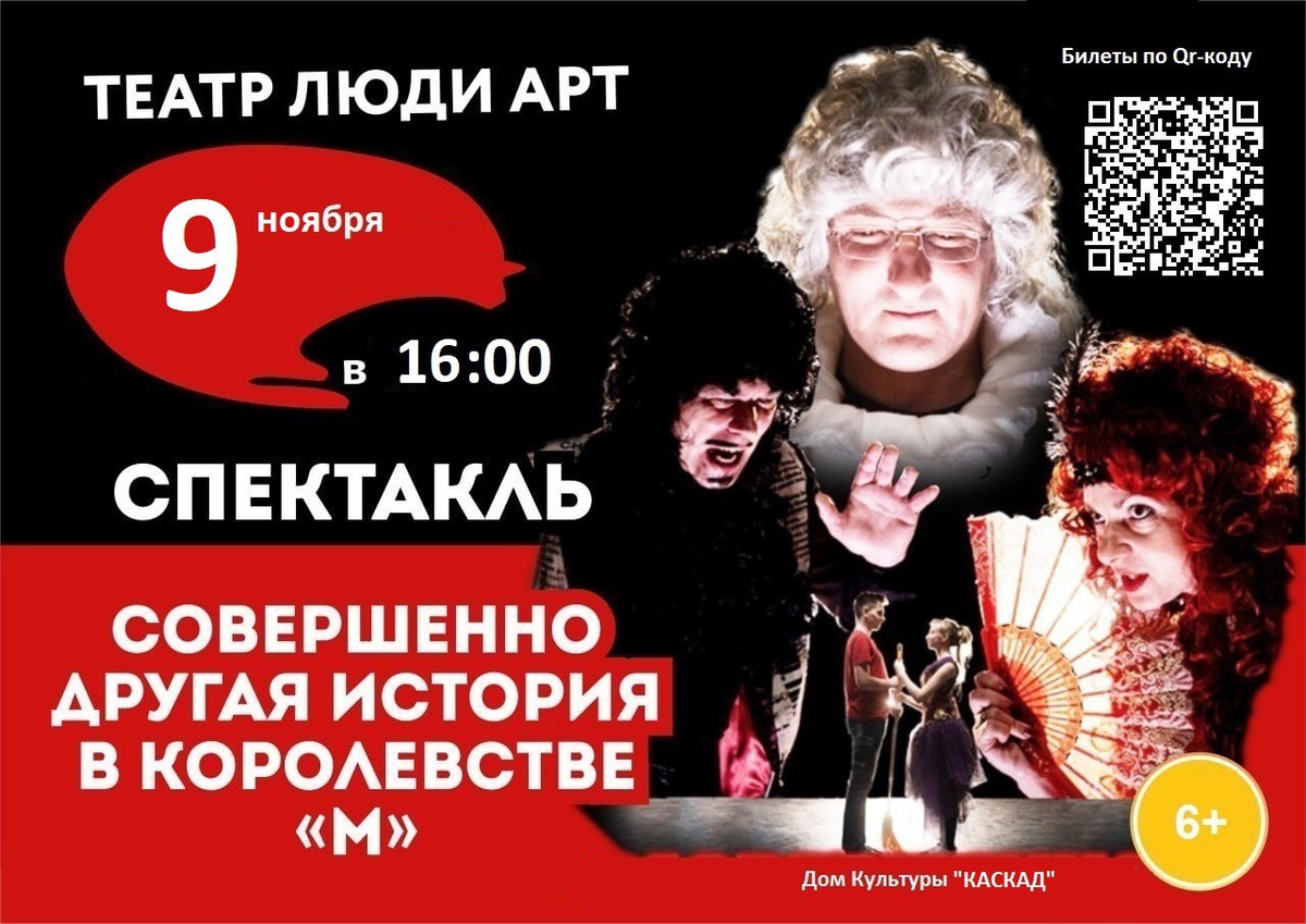 💥 Спектакль "Совершенно другая история в королевстве "М" в г.о.Чехов Действия разворачиваются в необычном королевстве. Придворные плетут интриги за спиной правителя и бед не знают. Но вдруг появляется он, юноша, который не согласен с таким порядком дел. Удастся ли ему изменить ситуацию? Найдёт ли он соратников? Приходи на спектакль и узнаешь! Продолжительность: 1 час 10 мин. Режиссер: Дмитрий Миськов 📶 Категория: Спектакли 🚫 Возраст: 6+ 📆 09.11.2024 🕕 16:00 🏢 ДК «Каскад» 📍 г.о. Чехов, п. Васькино, д.4 💰 Цена: 350 ₽ 🎫 Купить билет: https://iframeab-pre10064.intickets.ru/seance/38297305