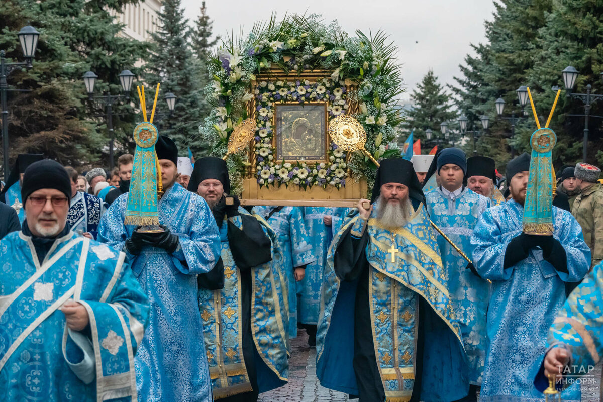 Сегодня – в День народного единства – в столице Татарстана прошел традиционный крестный ход с чтимым образом Казанской иконы Божией Матери. Это значимое для города события, которое каждый раз собирает тысячи верующих, проходит два раза в год: 21 июля – в день явления образа, и 4 ноября – в праздник, установленный в память об избавлении в 1612 году Москвы и России от иноземных захватчиков.