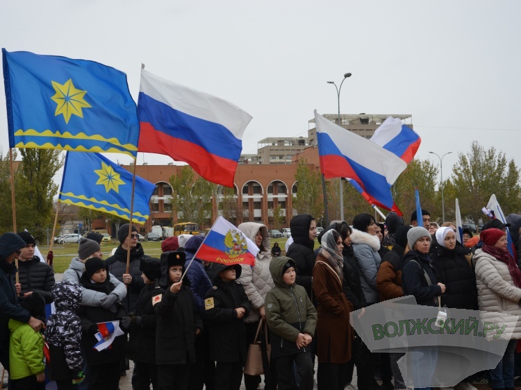 В понедельник, 4 ноября, в Волжском на нескольких площадках проходят мероприятия в честь Дня народного единства. Одно из центральных прошло на парапете Центра культуры и искусства «Октябрь» – в 11.00 часов здесь начался концерт-акция. Именно в это время с неба начал срываться снег, который буквально через несколько минут превратился в мокрую метель с пронизывающим ветром. Однако, непогода не остановила волжан. На площади собрались несколько сотен человек – студентов, школьников, дошколят, общественников, волонтёров, представителей диаспор, образовательных учреждений, администрации Волжского и подведомственных структур, депутаты Волжской городской думы.