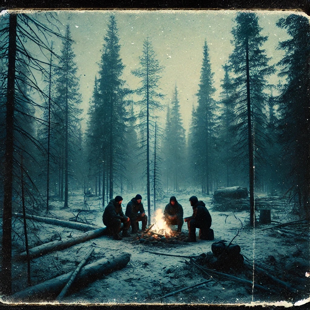 Когда группа, состоящая из четырёх человек — Павел, Николай, Лариса и Олег — добралась до места предполагаемого падения метеорита, наступил вечер, и солнце медленно клонилось к горизонту. Лагерь был разбит, палатки установлены, и костёр трещал, освещая ночное небо тусклым оранжевым светом. Густая тишина тайги лишь изредка прерывалась криками ночных птиц.