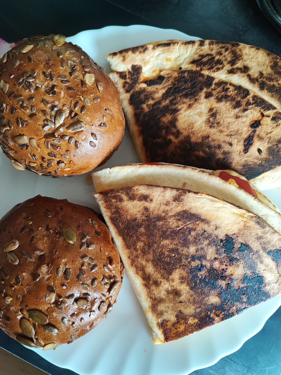 Сейчас много людей питается бургерами. Это очень быстро и удобно. Опаздываешь куда-то? Зашёл в БургерКинг или Макдоналдс, заказал булочку, быстренько съел и побежал дальше. Но это абсолютно не полезно для здоровья. Если всё же хочется что-то эдакое, то подобное блюдо можно сделать и дома, а потом взять и с собой. Причём делается это очень быстро и просто. Приготовление данного блюда займёт не более 25 минут, но принесёт на много больше пользы и насыщения, чем стандартные бургеры. Ещё одна достаточно быстрая замена фастфуду - лепёшки с начинкой. Потребуется: Приготовление: Огонь держать чуть меньше среднего, чтобы не сжечь ничего. Такие же лепёшки можно сделать с другой начинкой. Для неё понадобится: А вместо кетчупа так же можно взять горчицу. Пробовали что-то подобное? Как вам? Делитесь вашим мнением в комментариях!