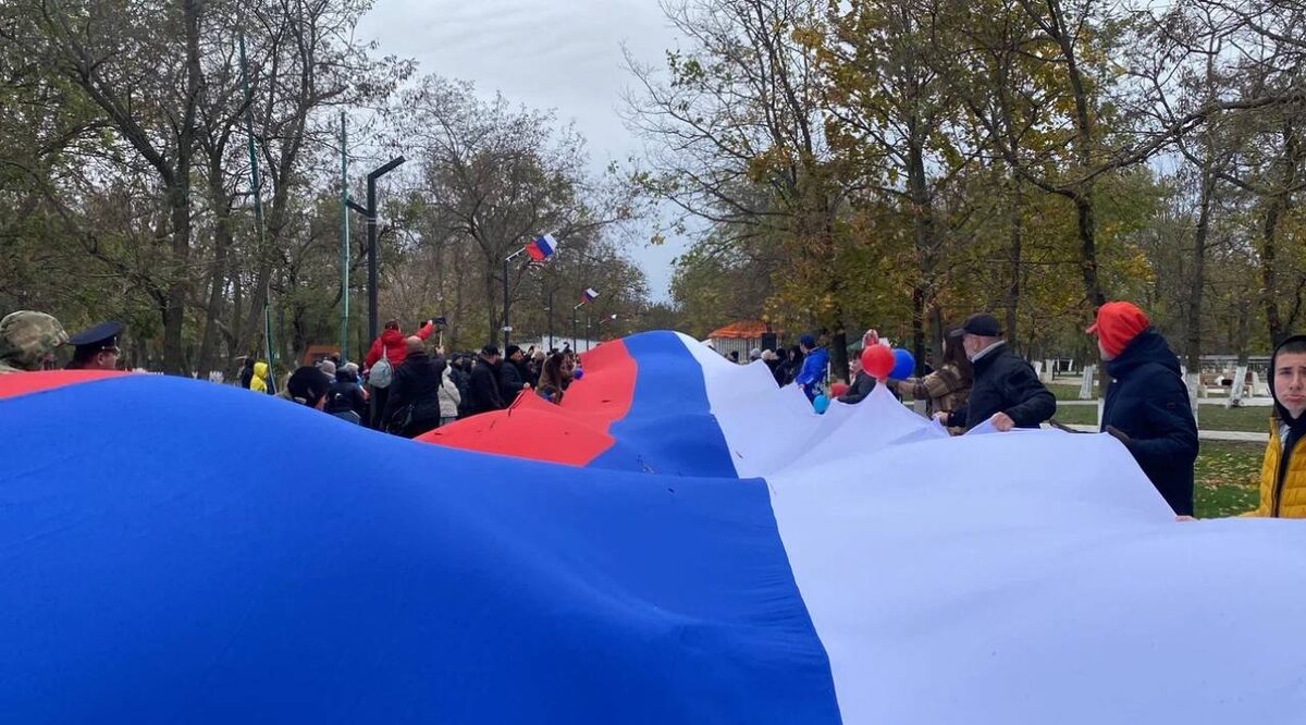 В Геническом парке имени Шевченко проходят праздничные мероприятия, посвященные Дню народного единства. Об этом сообщают корреспонденты ТРК «Таврия» с места событий. В рамках праздника в парке был развернут огромный триколор длиной 100 метров. В акции приняли участие волонтеры партии и депутаты фракции «Единая Россия». Также для всех гостей была организована полевая кухня, где можно было насладиться походной кашей и горячим чаем с пряниками. «В этот день хочется поздравить всех с праздником и еще раз напомнить о нашей славной, богатой и героической истории, пожелать всем крепкого здоровья и единства», – сказал председатель комитета по законодательству, местному самоуправлению и регламенту Херсонской облдумы Тамерлан Цаликов. Кроме того, для гостей был организован концерт от Херсонской областной филармонии. В программе — песни, танцы и духовой оркестр, которые создали атмосферу радости и душевного подъема. Ранее ТРК «Таврия» сообщала, что губернатор Херсонской области Владимир Сальдо по