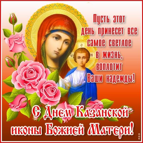 Добрый день! Сегодня два замечательных праздника. От души поздравляю вас с днём почитания Казанской иконы Божией Матери! Желаю любви,душевного уюта и тепла и Божией благодати в вашей жизни! И ещё поздравляю с Днём народного единства! Желаю верить только в лучшее и всегда помнить историю своего народа. Попозже напишу,как провели выходной. Пока. Всем Мира и Добра !
