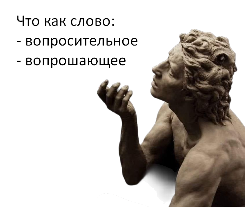 Акцентируя на слове что; Анализируя слово что; Апелируя к слову что;