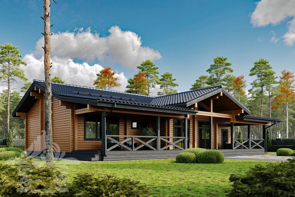 Свежий проект для наших Клиентов, наглядно демонстрирующий актуальные тенденции при выборе загородного жилья. Очередной одноэтажный дом, не тесный по площади, с огромной террасой, предоставляющей отличное место для проведения всей семьей времени на свежем воздухе.