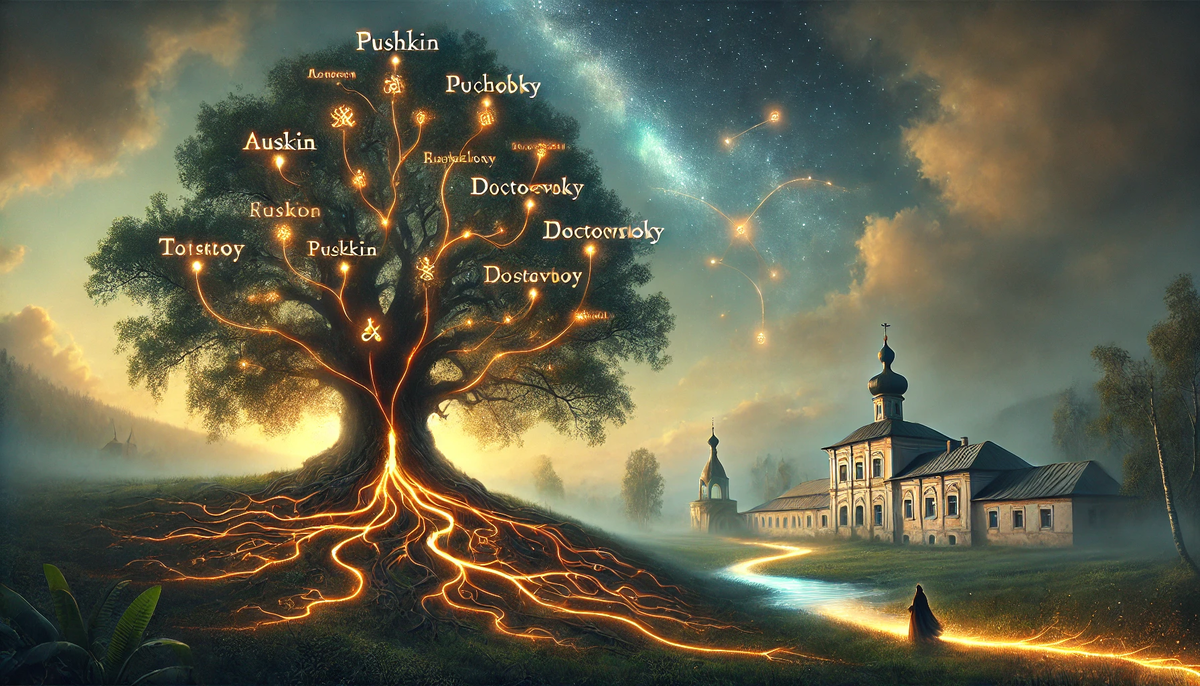Прошедшие сто лет после Пушкина стали золотым веком русской литературы, как будто сами звёзды выстроились в таинственном порядке, открыв русским писателям врата к небывалым высотам. Словно через мистическое озарение, Достоевский, Толстой, Тургенев, Бунин и другие великие авторы смогли сотворить шедевры, которые, как вечные руны, не подвластны времени. Эти писатели стали магами пера, их произведения — ключи к духовным истинам, что скрыты в глубинах человеческой души.