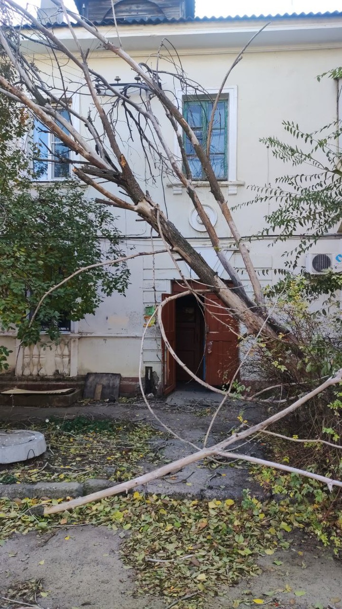 Еще в субботу в Волгограде бушевала серия циклонов вместе с «Лидией». Жительница Комитетской, 54/1 говорит, что в тот день у них рядом с подъездом рухнуло старое дерево. Это Ворошиловский район. До конца высохшее свалиться не смогло, так и зависло над входом в подъезд. Циклон вскрыл вечную проблему – кто должен убирать последствия циклона и почему это происходит не так быстро, как хотелось бы людям. По словам Татьяны, вот уже на протяжении двух дней до свалившегося дерева никому нет дела. Сначала его падение привело к обрыву проводов, в многоквартирном доме полдня в субботу не было света. Жители приложили невероятные усилия к тому, чтобы вернуть себе в квартиры электричество: - 2 ноября у нас во дворе пересечение улиц Комитетская, 54/1 и Гродненская, 3 у подъезда свалилось дерево, что повлекло обрыв проводов. С утра до обеда ждали, когда электрики восстановят провод. Сначала было сказано, что пока дерево не уберут, провода не починят. При помощи множества звонков с жалобами свет дали в