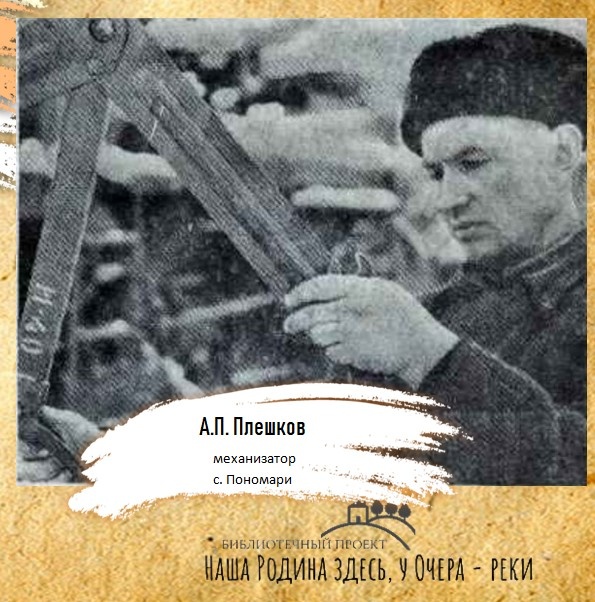 Знамя труда.- 1963.- 9 марта Колхоз «Хлебороб» недавно приобрел комбайн СК—4. Надо и его подготовить к работе. На снимке: лучший механизатор колхоза А. П. Плешков собирает мотовило к комбайну СК—4. Фото М. Беляева.