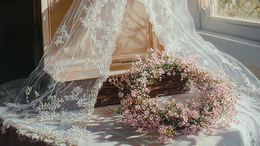 Из шкафа Галина Ивановна извлекла старомодную коробку. Открыла. И сразу на волю выпустила пушистую фату. Ту самую, с цветочками. Они были бледно-розовыми, очень нежными. Бабушка покрутила фату в руках, вспомнила: