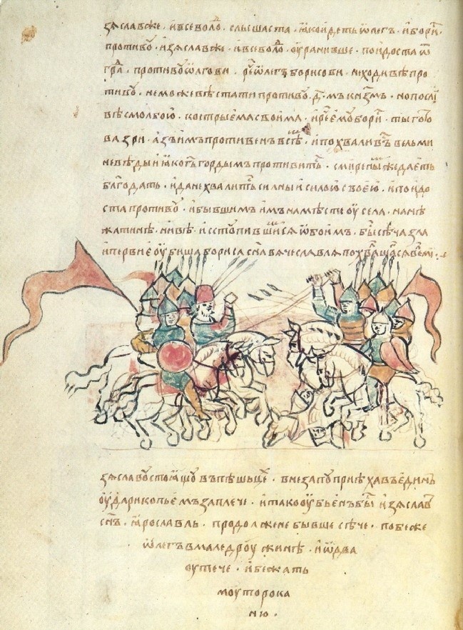 Отрывок из Радзивилловской летописи с описанием битвы на Нежатиной Ниве.