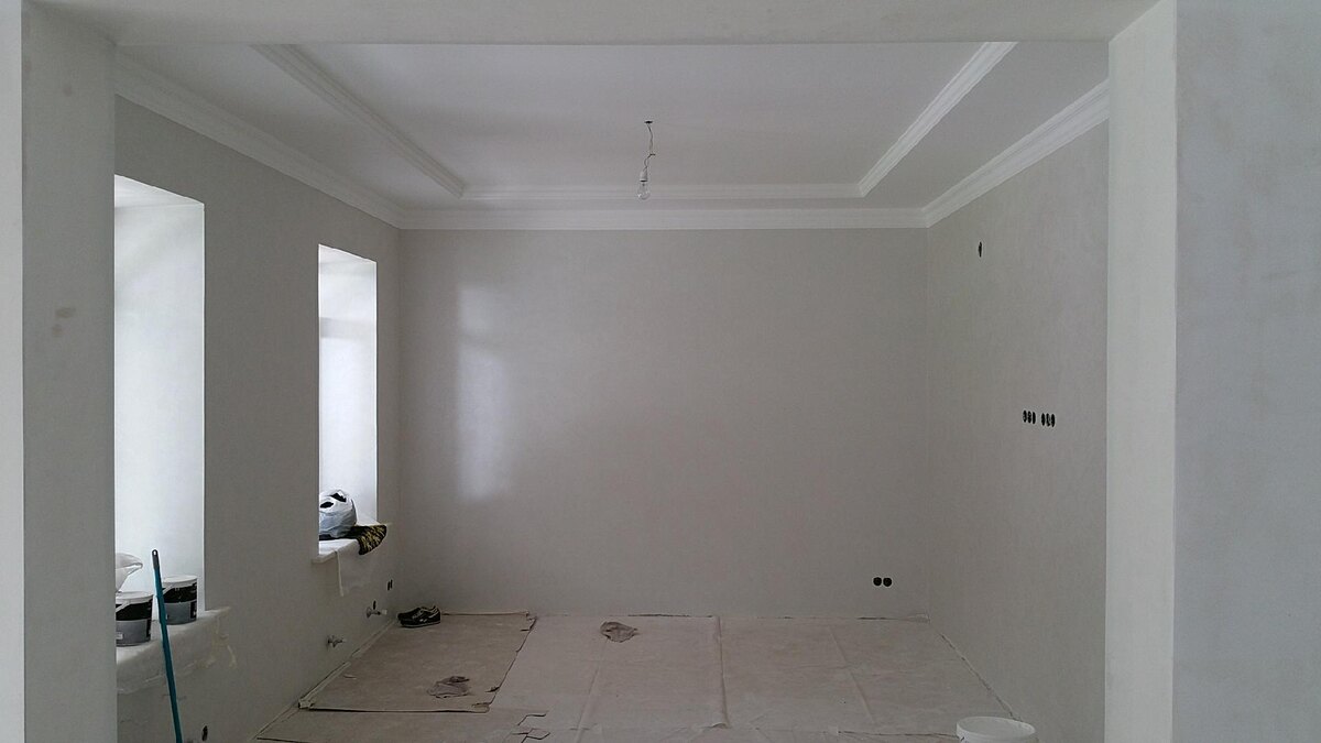 Добрый день уважаемые подписчики и гости канала. Сегодня хочу поговорить с вами и рассказать о том, как нужно готовить стены для оклейки обоями и финишной покраски ( как по обоям , так и просто по стене ). Ни для кого не секрет, что ремонт делается с верху в низ. Это как - спросите вы? С начала делается черновой пол ( что бы можно было "козлики" поставить или лавки, табуретки ), что бы было удобно стоять. Далее все работы ведем с верху в низ. Делаем потолок, потом стены и соответственно пол. Начинаем с сан узлов, потом соответственно с дальней комнаты и на выход. Делается это для того, что бы при ремонте, не повредить уже отремонтированные помещения. Не носить через них строй материал, не мешать миксером смеси (шпатлевку, штукатурку и т.д.). Допустим, потолки мы подготовили под финишную отделку ( поклейку, покраску). Делаем стены. Как правило ,стены от застройщика уже заштукатурены и как правило, уровень у стен , более менее - есть. Что нужно делать? Шпатлюем на 2 - 3 раза, на вздир,