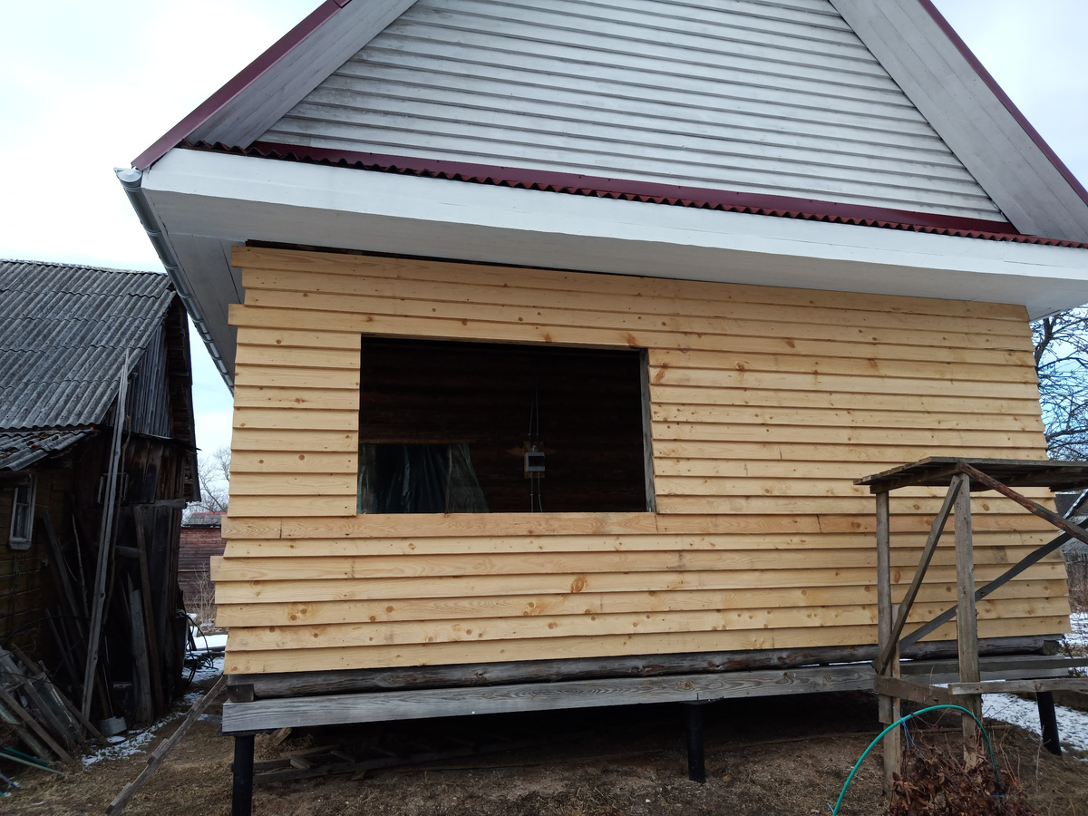 В предыдущем, 2020-м, недоброй памяти, коронавирусном году, мы оставили дом с недообшитой верандой. И, как только погода стала позволять наружные работы, а именно, в конце марта, мы купили недостающие доски и продолжили это нелёгкое дело.