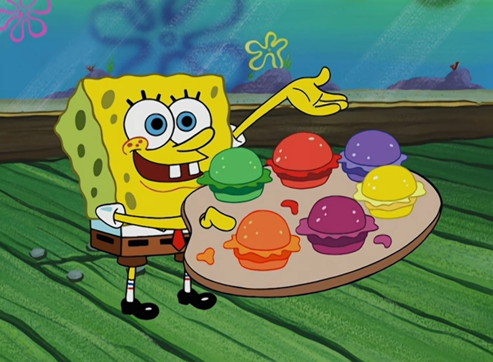 36 дней без посетителей – бизнес в ресторане «Красти Краб» загибается. Деньги уплывают в другие заведения быстрого питания, потому что у них есть свои фишки. У шеф-повара заведения, Губки Боба Квадратные Штаны, идея. «Мистер Крабс, это не испорченное мясо, это раскрашенное мясо. Красивые котлетки, 6 различных цветов.» В продолжение мема мистер Крабс и Сквидвард смеются над идеей. При этом происходит наложение фразы: «Всем детишкам гореть в огне» – «Нет» – «Закрой хайло, бабсда многостаночная. Только и умеешь, что пилить, пилить... Вы все нахрен сдохнете». Фраза «Красивые котлетки, 6 различных цветов.» из 2-й части 5-й серии 2-го сезона мультсериала «Губка Боб квадратные штаны» (SpongeBob SquarePants), которая так и называется «Красивые котлетки» (Patty Hype). Продолжение «Всем детишкам гореть в огне» – из фильма «Легион» (Legion) 2010 года. Произносит Глэдис Фостер.