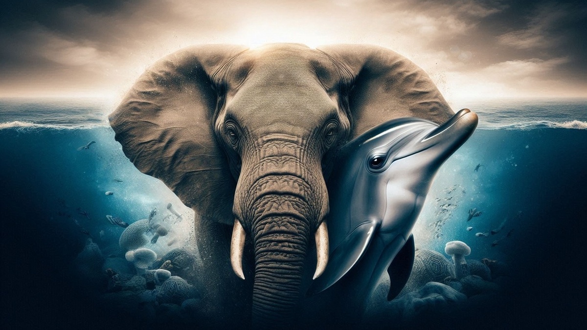 Привет, друзья! 😃 Интеллект животных всегда вызывает интерес ученых и любителей природы, особенно таких удивительных видов, как слоны и дельфины. Сегодня обсудим сложный и увлекательный вопрос: кто же умнее — слон🐘 или дельфин🐬? Эти животные давно привлекают внимание ученых и любителей природы благодаря своей удивительной сообразительности. Но кто из них окажется на вершине интеллектуальной пирамиды? 🤔 Давайте разбираться вместе! Давайте заполним промежутки, а то страшно: как вообще измерить интеллект животного? Ведь это не математика, где все понятно: дважды два — четыре. Интеллект в мире животных — это способность обучаться, адаптироваться, общаться и... даже видеть свое отражение в зеркале. По мнению ученых, дельфины решают сложные задачи в команде, а также узнают именно себя в зеркале. Начнем с памяти, ведь это один из важнейших аспектов интеллекта. Слоны здесь, кажется, обгоняют даже нас с вами! Они запоминают лица, дороги к водоемам, где они были несколько лет назад, и даже