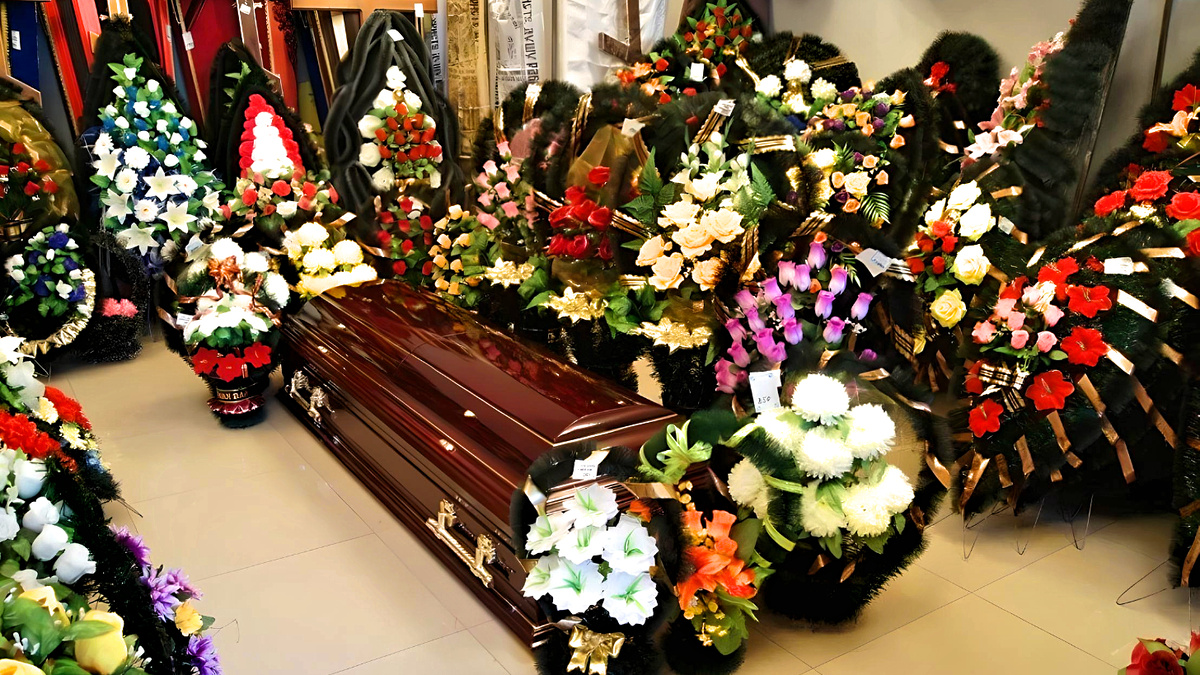 После церемонии прощания с покойным, цветы вытаскивают из гроба и переносят на место захоронения, располагая бутонами к кресту - древнему символу перехода между мирами.