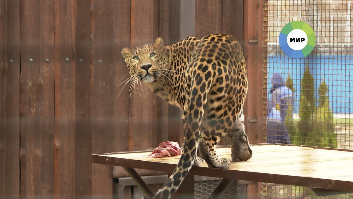 Леопарда привезли из России. Он стойко преодолел путь в тысячу километров.