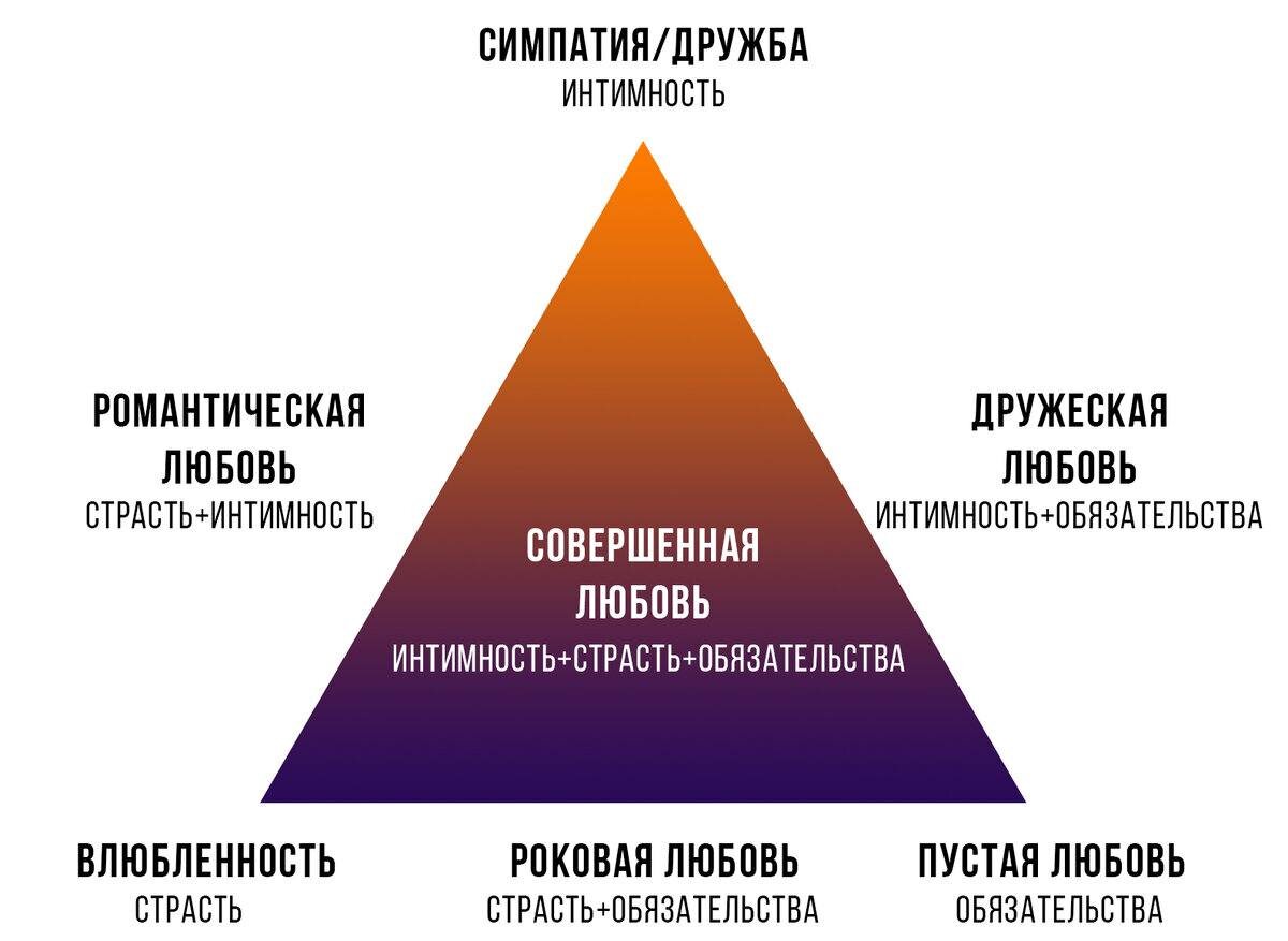 Наверное, именно парадоксы и различия делают человеческие отношения и сложными, и удивительными одновременно. Но, то что приемлемо для кого-то, вызывает у других изумление. Женщины спрашивают меня: Разве это отношения? Нормально ли, когда партнер ведет себя так-то и так-то? Разве нормальные отношения могут строиться только на договоренности, деньгах или сексе? Могут. Отношения порой принимают совершенно экзотические формы - главное, чтобы партнеры чувствовали себя в них счастливыми, не знали, а именно чувствовали! Федор Михайлович уже сказал до меня эти мудрые слова: «Самое важное в любых отношениях — желание быть вместе». Этой фразой, как лакмусом можно проверять отношения, только не на словах, а на деле. Похожи действия моего партнера на желание быть вместе? А насчет отношений, которые кажутся нам порой неполноценными или даже неправдоподобными приведу в пример Трехкомпонентную теорию любви, разработанную профессором психологии Робертом Стернбергом. Он утверждал, что отнош