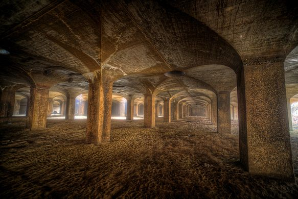 День добрый! Сегодня поговорим о таком интересном заброшенном объекте как станция фильтрации города Вашингтон в США. Первым источником водоснабжения города был Вашингтонский акведук, подававший воду из реки Потомак. На заре развития городского водопровода очистка воды не производилась, что крайне печально сказывалось на здоровье горожан. Проблему, в те ранние времена было решено решить с применением самой простой и надежной и на сей день технологии- фильтрации воды через слой песчаной загрузки, толщиной в 4 фута (121 сантиметр). Для этого были построены 25 бетонных фильтрационных ячеек. Хранился чистый песок в отдельных песчаных бункерах из бетона, на подавался на фильтры ручным способом- засыпкой лопатами через 2100! люков к каждой секции ячеек. Минусом системы была опасность для горожан- часть люков держали открытыми для вентиляции и доступа воздуха для рабочих, обслуживающих ячейки. Фильтры занимали большую площадь городской территории и для экономии на поверхности был создан парк.