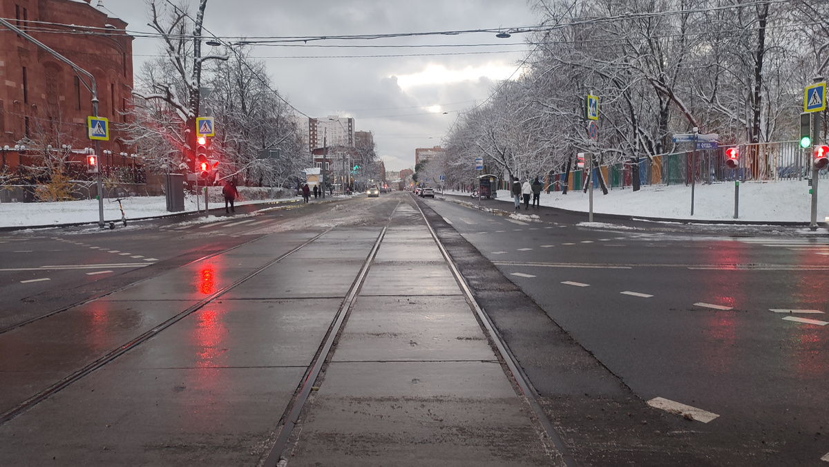 Вид на готовый участок путей от Олимпийского проспекта до улицы Образцова.