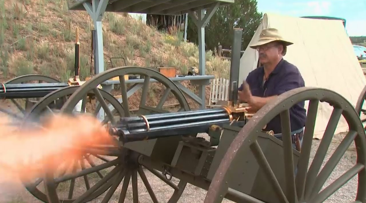 - В ролике показана настоящая восстановленная «картечница Гатлинга» XIX века