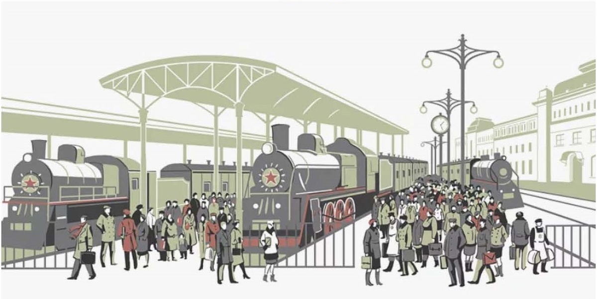 Между Москвой и Берлином проложены железнодорожные пути, также видны разрушения от боевых действий, опрокинутый немецкий состав, видны окопы, в которых находятся бойцы. Видно, что боевые действия, несмотря на Победу, всё ещё не везде прекратились. Раскрученный маховик ужасной войны невозможно остановить в одночасье... Видны разрушенные мосты, искорёженные железнодорожные пути.
