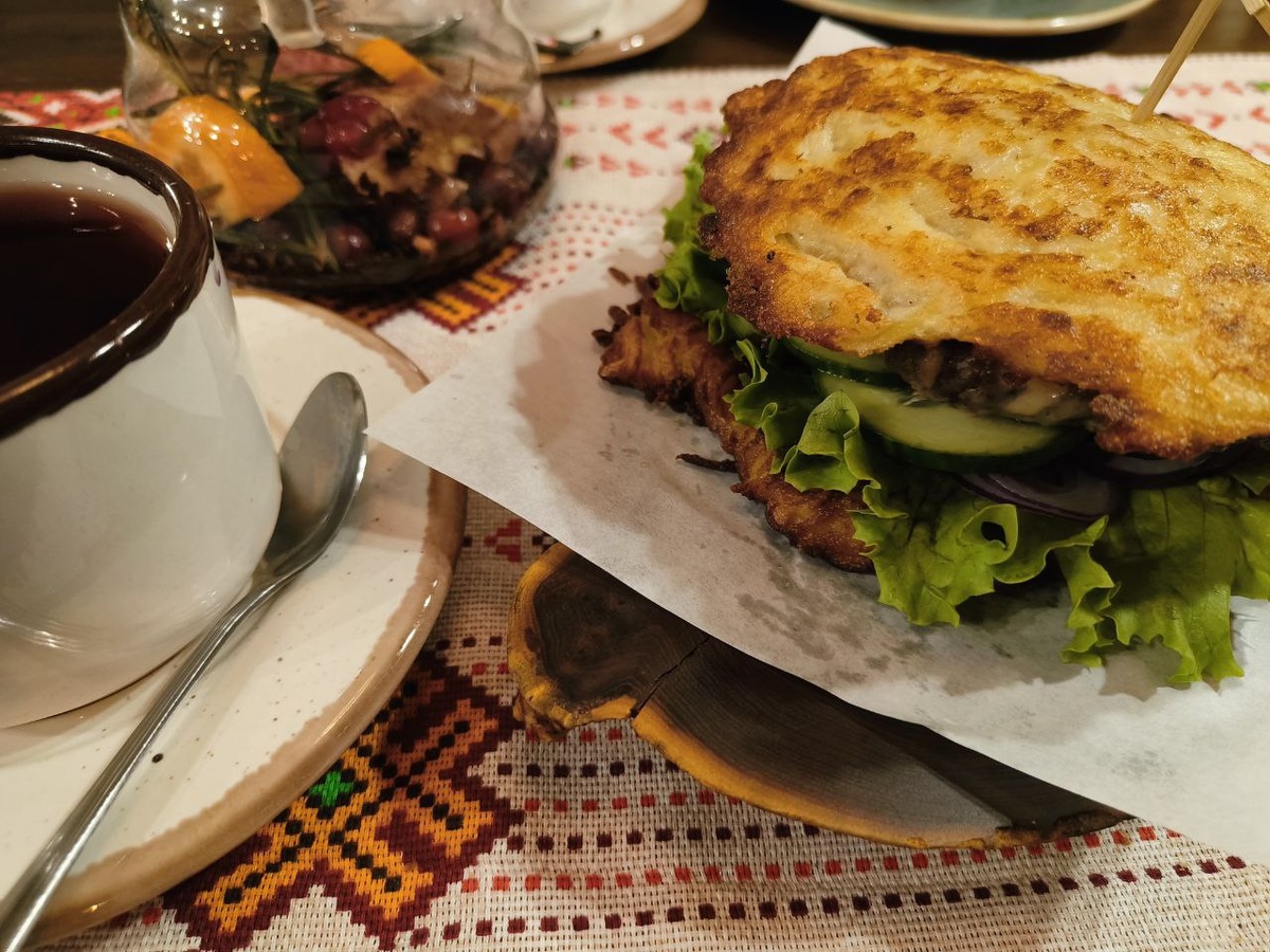 Всем доброго времени суток! На днях в одном из Челябинских ресторанов наткнулся на довольно интересный бургер и решил его заказать. В целом было довольно классическое наполнение, такое как огурчик, помидор, лист салата, красный лук, но вместо классической котлеты не жирная говяжья отбивная, но самое главное отличие это то что вместо булки для гамбургера, сверху и снизу было по одному большому дранику. Верхний драник был изнутри покрыл нежным сливочным соусом (скорее всего смесь майонеза и сметаны), а нижний - соус барбекю. И если взять все ингредиенты на вилку и положить в рот, то это прямо оргазм для вкусовых сосочков). Стоимость блюда была около 550 рублей, но я вам скажу, это стоило каждого рубля! Всем добра! Кушайте в меру. Всех обнял! #бургер #драник #целитель #целительФилипп #целительЧелябинск #целительизЧелябинска