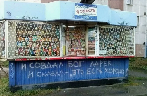 - Я тебе, сука, сейчас киоск сожгу!... - вопль, крик с маской гнева. (О, где вы, бездарные актеришки современных сериалов?! Что вы там кривляетесь в мизансценах, почему не учитесь на сценах из жизни?) - Я сейчас бензин принесу и сожгу!.. - и мат-перемат.