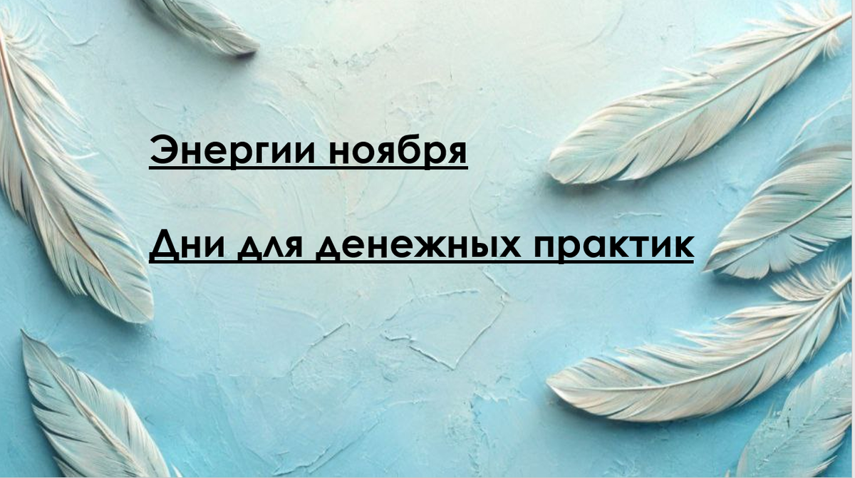 В конце поста - простая денежная практика Один из арканов ноября - 11 (Сила). *есть еще один аркан, который оказывает влияние, там еще присоединяется аркан года, но о нем подробно рассказываю в закрытом клубе. Итак, аркан Сила. Что он несет нам? Ключевые темы ноября: Обратите внимание, на что направляете свою силу - на созидание или на разрушение? Будьте осознанны, чтобы понимать, что вы сейчас делаете, чтобы быть в настоящем моменте. Тогда, из текущего момента, проще управлять своим состоянием и своей реальностью. Если у вас много энергии и вы не знаете, куда ее направить, направляйте на свою реализацию. Это первое и никогда не лишнее. И второе - можете начать подводить итоги года, а именно: А теперь самое "вкусное" на ноябрь - дни для денежных практик. В ноябре их будет много: 1, 7, 8, 9, 10, 11, 16, 17, 18, 19, 24, 25, 26, 27, 28 Можно и с Денежным кодом работать, и разные практики делать. Я рекомендую чередовать разные практики и не забывать про реальные целевые действия. Еще можн