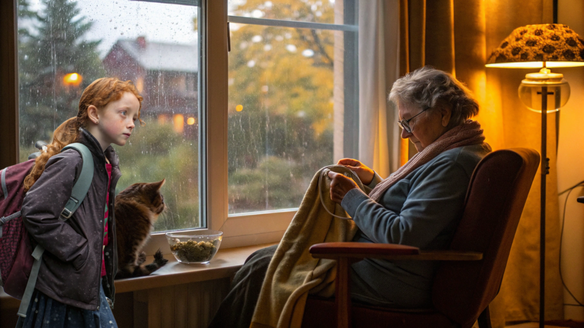 Старая кошка Муся дремала на подоконнике, изредка приоткрывая один глаз, чтобы проследить за нитью, свисающей с колен хозяйки. За окном шелестел октябрьский дождь, размывая очертания соседних домов и превращая их в акварельные пятна.