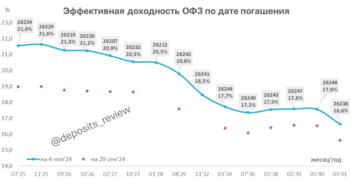 Подборка ОФЗ с постоянным купоном на 4 ноября 2024