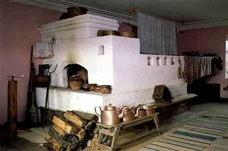 Зажиточные крестьянские дома имели по две печи. В теплые дни, когда не пекли хлеб, хозяйка растапливала голландку и кашеварила на ней. С чугунной плиты снимались кольца, в отверстие помещали чугунок, чтобы еда варилась на открытом огне.