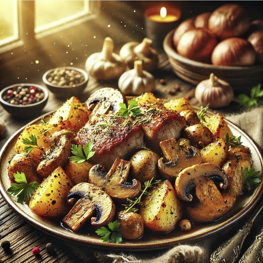 Это классическое блюдо идеально подходит для осенних и зимних дней. Вкусное и ароматное жаркое, тушеное с грибами и картофелем, согреет и порадует всю семью. Ингредиенты: Подавайте жаркое горячим, прямо со сковороды или из кастрюли. Оно отлично сочетается с домашним хлебом или свежими овощами.