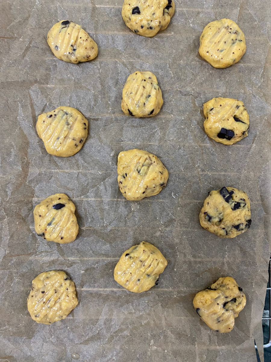 А какое ароматное .. Всё благодаря букету специй. Таким рецептом поделилась сестра. Получилось очень вкусно ! Итак, берём: пюре тыквы 40 Гр сливочное масло 45 гр сахар 45 гр мука 110 гр желток 1 шт горький шоколад 25 гр кукурузный крахмал 5 гр разрыхлитель 2 гр соль щепотка имбирь молотый, корица, мускатный орех по щепотке. Готовим. Топим масло. Кидаем туда сахар и всё специи. Мешаем. Добавляем пюре и желток. Мешаем. Заранее соединяем муку с разрыхлителем и понемногу вводим в масляную смесь. Рубим шоколад и дополняем тесто. Тесто должно прилипать ко всему. Мокрыми руками формируем шарики, укладываем на расстоянии, верхушку придавливаем. И отправляем в разогретую духовку на 180 градусов на 12 минут. По истечении времени даём остыть. И наслаждаемся вот такими солнышками, хрустящими сверху и мягкими внутри. Готово. Вы великолепны .